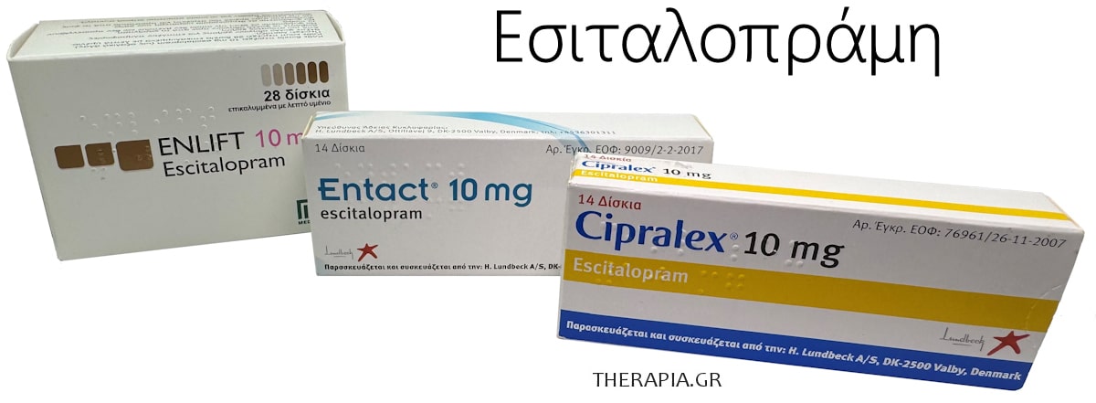 Δείτε πιο αναλυτικές πληροφορίες (χρήσεις και παρενέργειες) για την εσιταλοπράμη στο πρωτότυπο φάρμακο Cipralex.