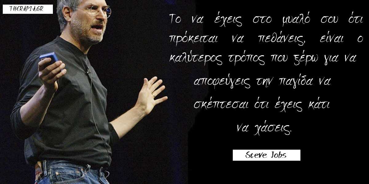 - Το να έχεις στο μυαλό σου ότι πρόκειται να πεθάνεις, είναι ο καλύτερος τρόπος που ξέρω για να αποφεύγεις την παγίδα να σκέπτεσαι ότι έχεις κάτι να χάσεις.