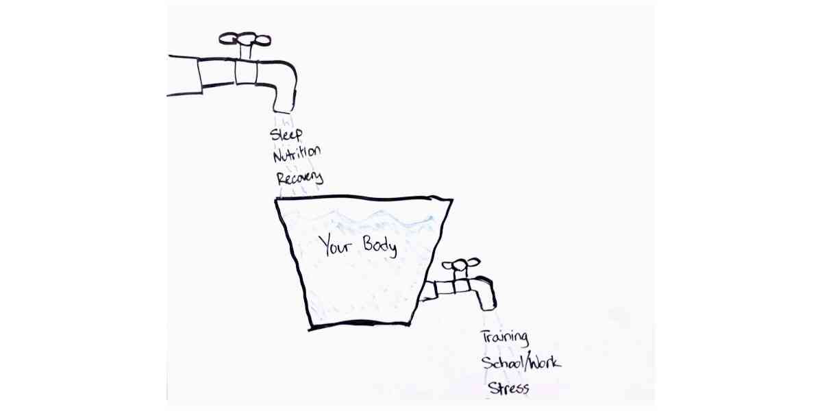 Το ίδιο ακριβώς συμβαίνει και με το στρες, δρα αθροιστικά. Για παράδειγμα, οι τρεις μέρες προπόνησης είναι ένας ρεαλιστικός στόχος αλλά η προσθήκη της τέταρτης ημέρας προσθέτει στρες που αρχίζει να συσσωρεύεται. Κάποια στιγμή, το φορτίο είναι τόσο μεγάλο που οδηγεί στην εξάντληση.